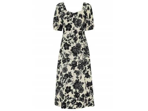 B.P.C sukienka z nadrukiem krepowana kremowo-czarna ^44/46