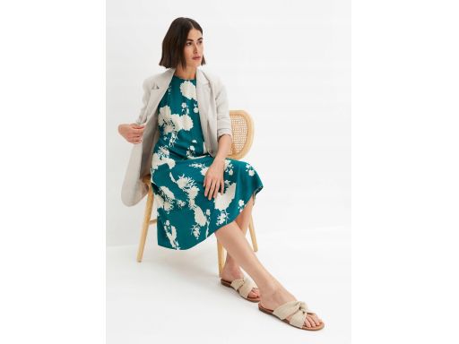 B.P.C sukienka zielona w beżowe kwiaty ^38