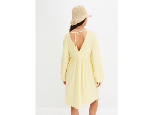 B.P.C sukienka żółta z krepy letnia długi rękaw 44/46.