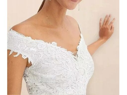 B.P.C suknia ślubna śmietankowa carmen z koronką r.40