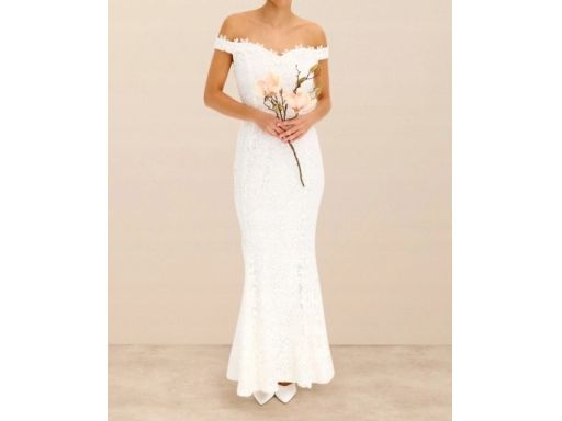 B.P.C suknia ślubna śmietankowa carmen z koronką r.44