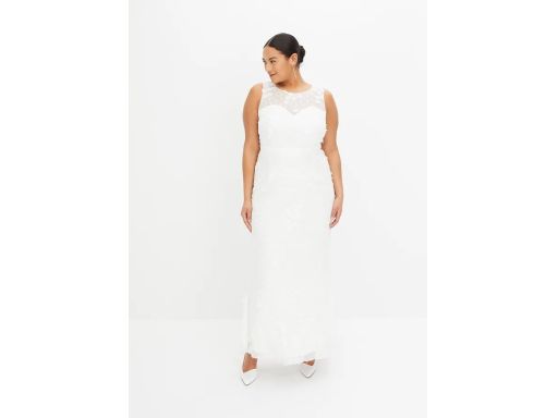 B.P.C suknia ślubna z siateczkowego materiału z aplikacją z kwiatuszkó