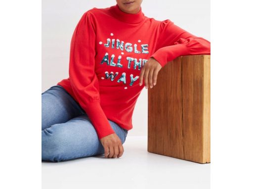B.P.C sweter dzianinowy czerwony świąteczny z napisem z cekinów 40/42.