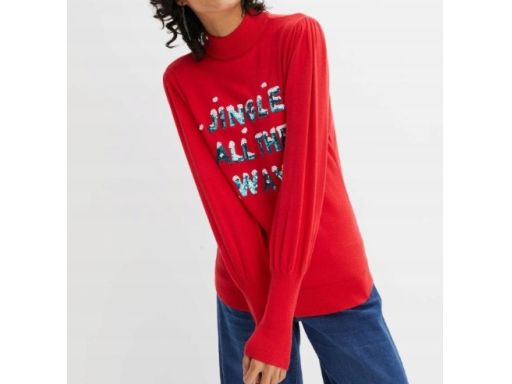 B.P.C sweter dzianinowy czerwony świąteczny z napisem z cekinów ^40/42