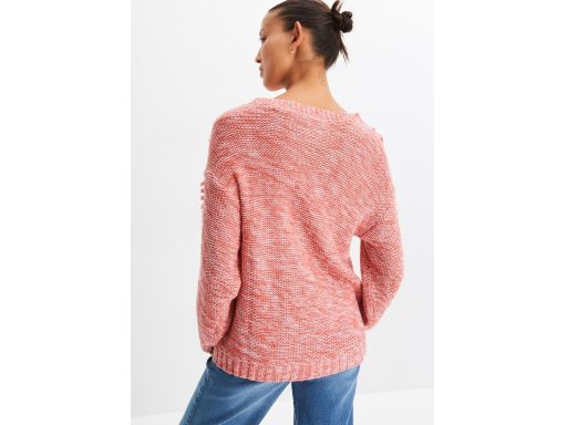 B.P.C sweter koralowo-różowy melanż z frędzlami 40/42.