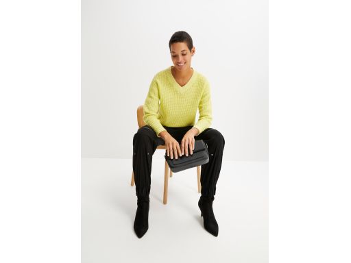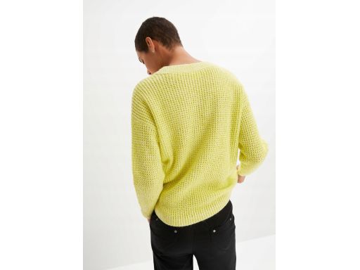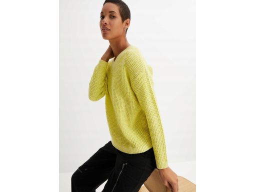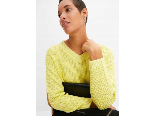 B.P.C sweter limonkowy melanż dekolt w serek 48/50.
