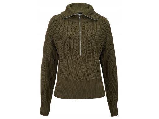 B.P.C sweter oliwkowy ze stójką i z zamkiem 48/50.
