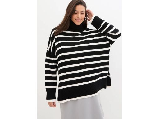 B.P.C sweter oversize z rozcięciami po bokach czarno-biały w paski r.40/42