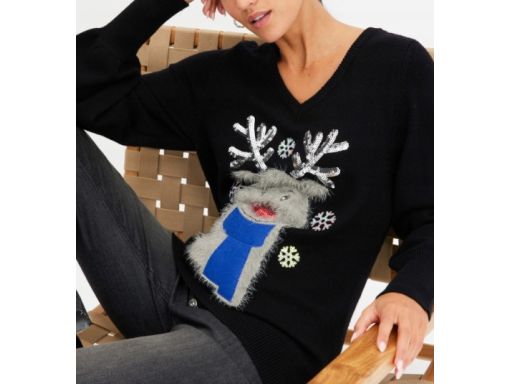 B.P.C sweter świąteczny czarny w serek z nadrukiem 3D 44/46.