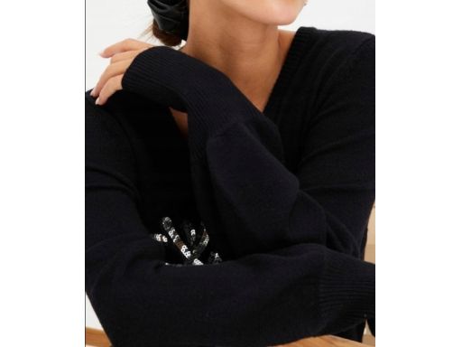 B.P.C sweter świąteczny czarny w serek z nadrukiem 3D 44/46.