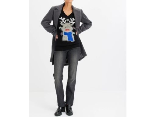B.P.C sweter świąteczny czarny w serek z nadrukiem 3D 52/54.
