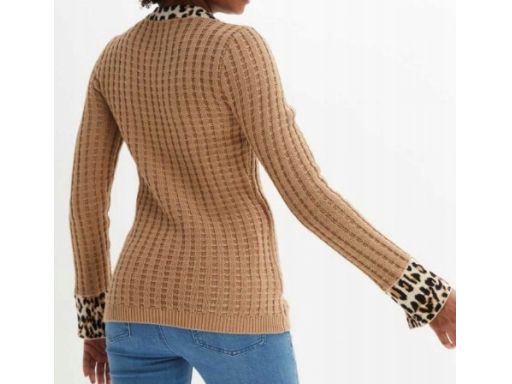 B.P.C sweter z efektem założenia kopertowego beżowy z cętkami ^44/46