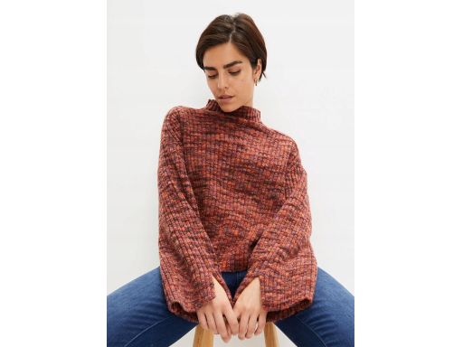 B.P.C sweter ze stójką brązowy melanż 48/50.