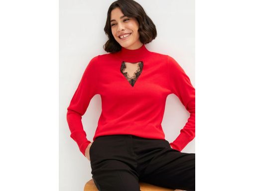 B.P.C Sweterek czerwony z wycięciem w dekolcie ^36/38