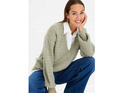 B.P.C sweterek kopertowy z połyskiem zgaszona zieleń r.36/38