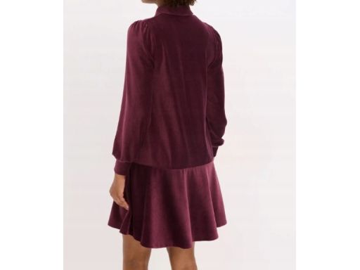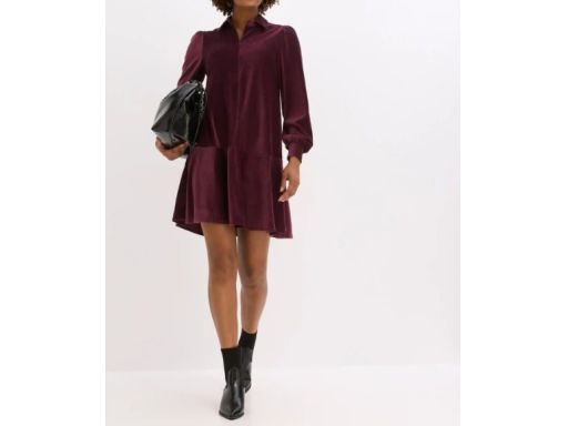 B.P.C sztruksowa sukienka jagodowa z kołnierzykiem 40/42.