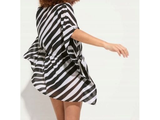 B.P.C szyfonowa tunika plażowa czarno-białą w pasy ^44/46