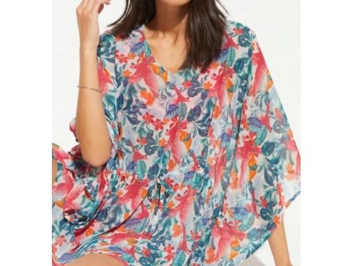 B.P.C szyfonowa tunika plażowa kolorowa w kwiaty ^44/46