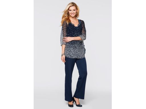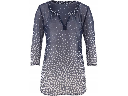B.P.C szyfonowa tunika prześwitująca granatowa w białe grochy ^40