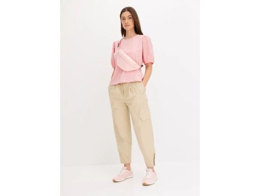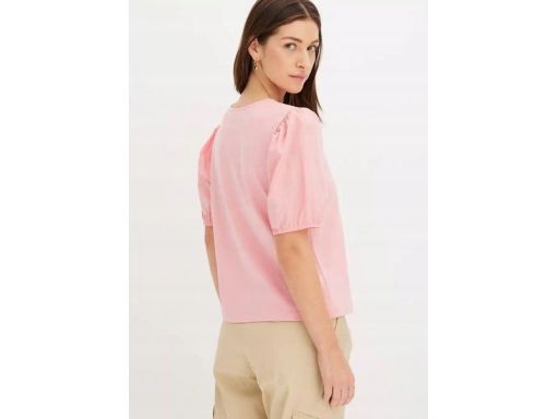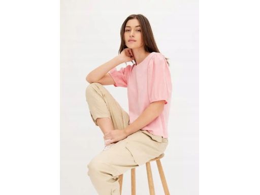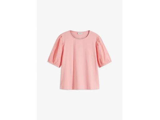 B.P.C t-shirt bawełniany różowy z bufiastymi rękawkami 44/46.