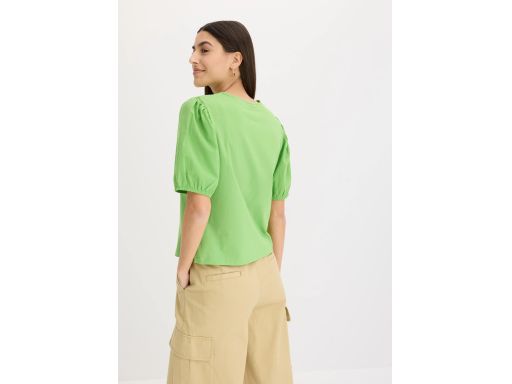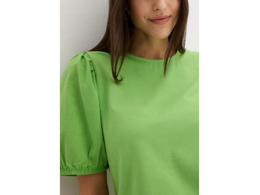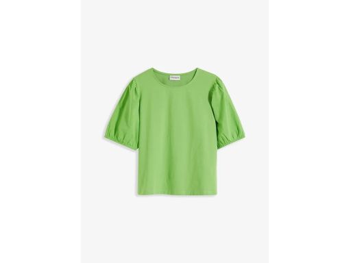 B.P.C t-shirt bawełniany zielony z bufiastymi rękawkami 52/54.