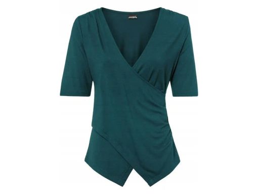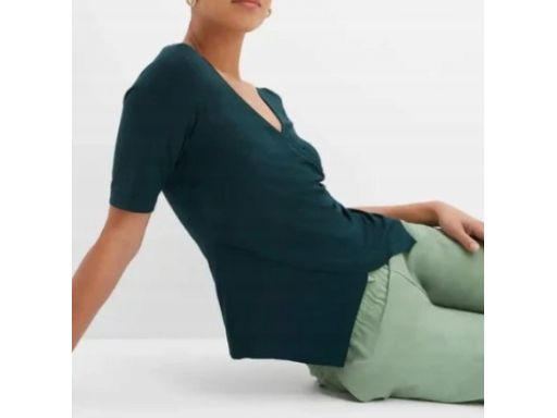 B.P.C t-shirt butelkowa zieleń z efektem założenia kopertowego ^36/38