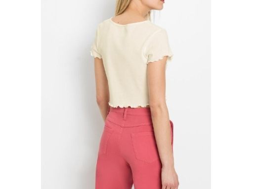 B.P.C t-shirt damski prążek ecru krótki r.44/46