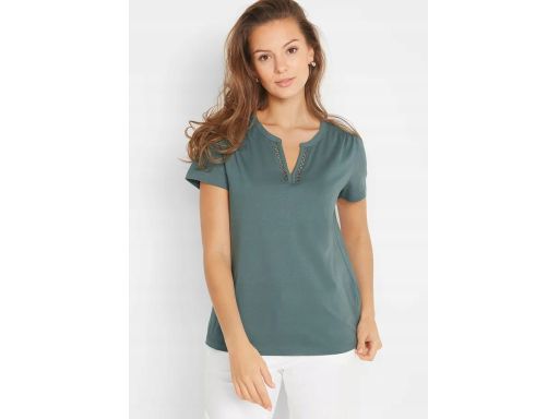 B.P.C t-shirt khaki ze wstawką z koronki 40/42.