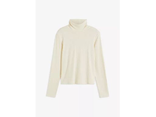 B.P.C t-shirt krótki beżowy prążkowany z golfem ^44/46