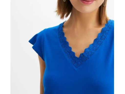 B.P.C t-shirt niebieski z haftowaną koronką 36/38.