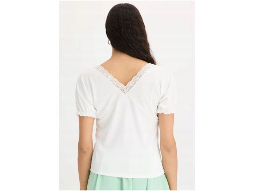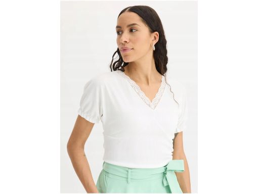 B.P.C t-shirt śmietankowy prażkowany z koronką r.40/42