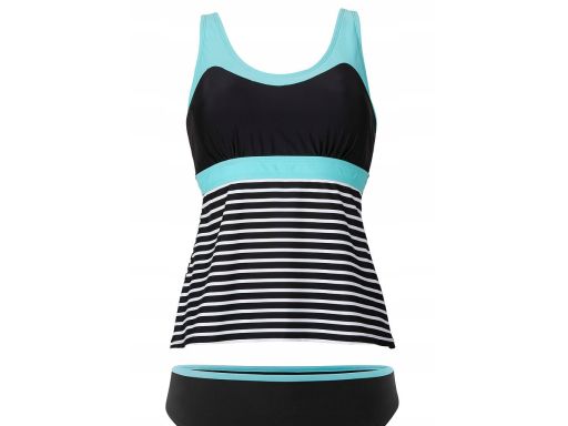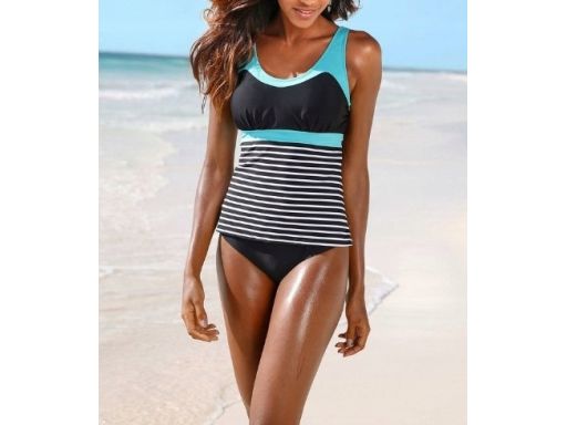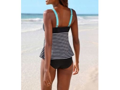 B.P.C tankini czarno-biało-turkusowe w paski r.38
