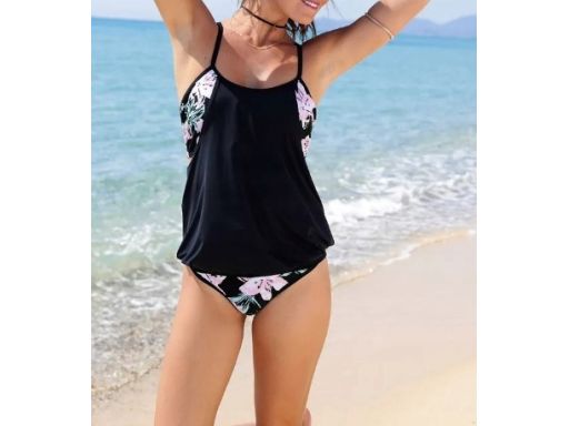 B.P.C tankini oversize czarne ze wzorem kwiatowym r.40