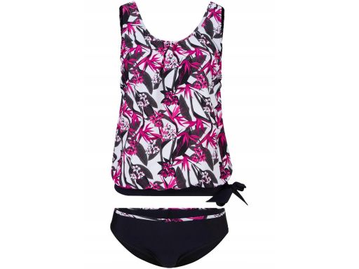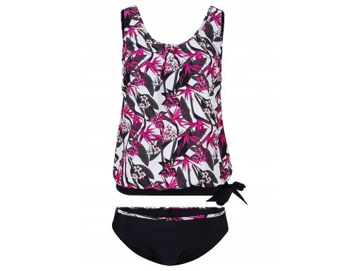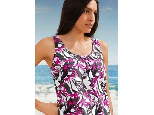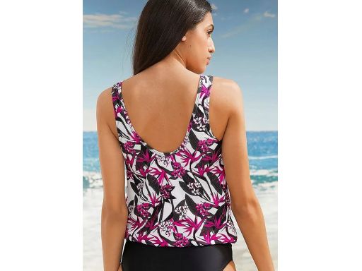 - top biały w kolorowy wzór roślinny z dominacją koloru różowego