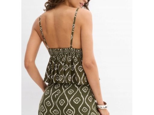 B.P.C top damski z baskinką khaki w białe wzorki 42.