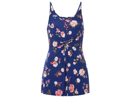 B.P.C top granatowy w kwiaty z marszczeniem ^48/50