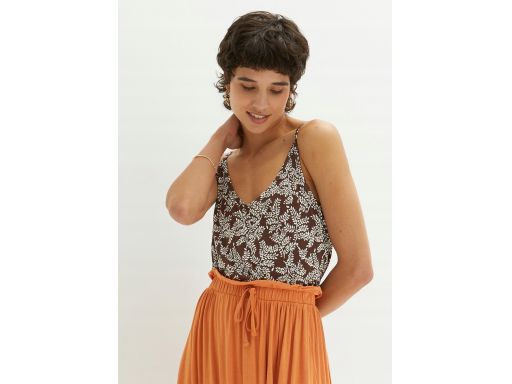 B.P.C top na cienkie ramiączka brązowy w białe wzory 40/42.