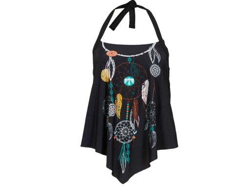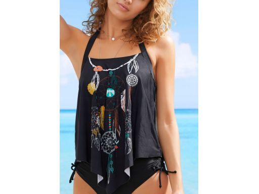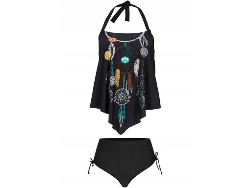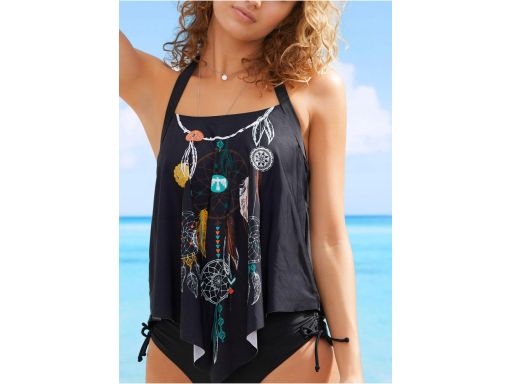 B.P.C top tankini czarny z nadrukiem łapacz snów asymetryczny ^42