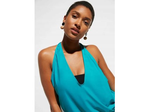 - wierzchni luźny top z wiązanymi ramiączkami na szyi kolor niebiesko-turkusowy (kolor w rzeczywistości jest intensywniejszy niż na zdjęciu)