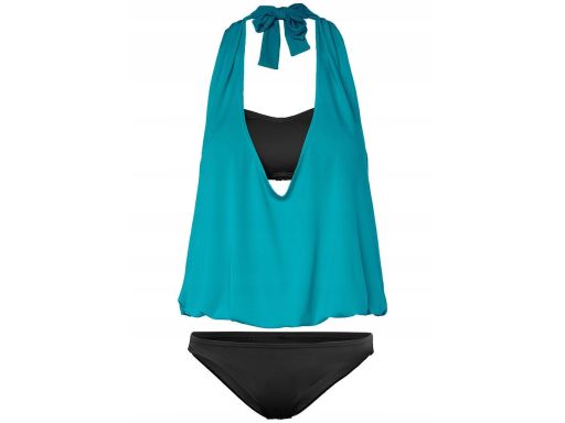 B.P.C top tankini niebieski, luźny z czarnymi figami 46.