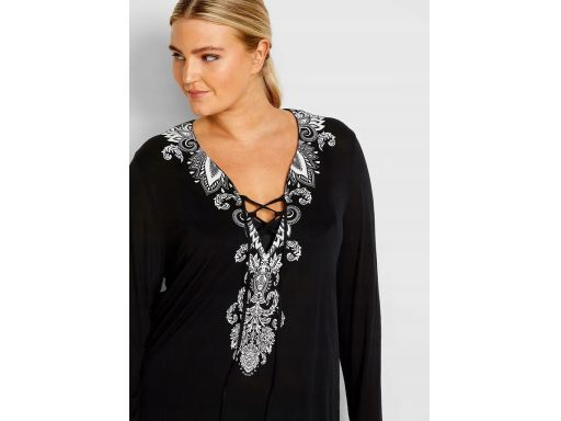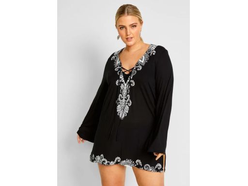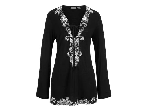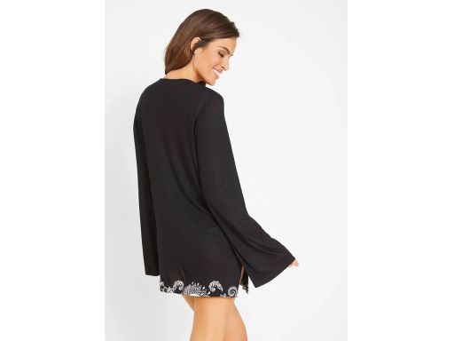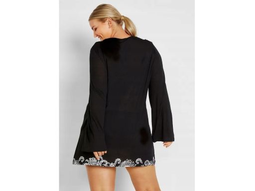 B.P.C tunika plażowa czarna z białym nadrukiem boho ^36/38