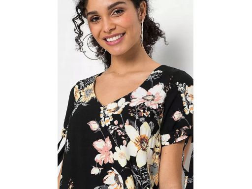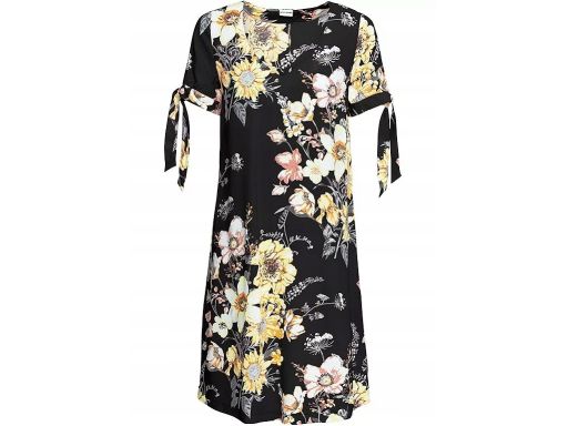 B.P.C wiskozowa sukienka czarna w kolorowe kwiaty ^42