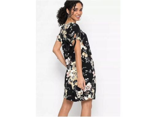 B.P.C wiskozowa sukienka czarna w kolorowe kwiaty r.40