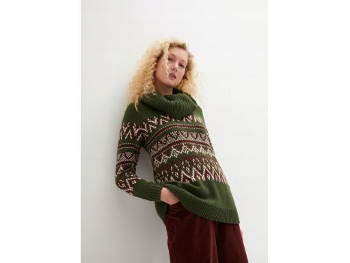 B.P.C zielony sweter we wzór norweski z szerokim golfem ^44/46
