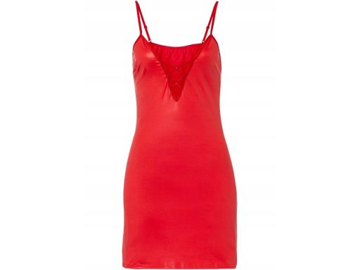 VENUS koszulka nocna czerwona z ozdobnymi paskami w dekolcie ^36/38